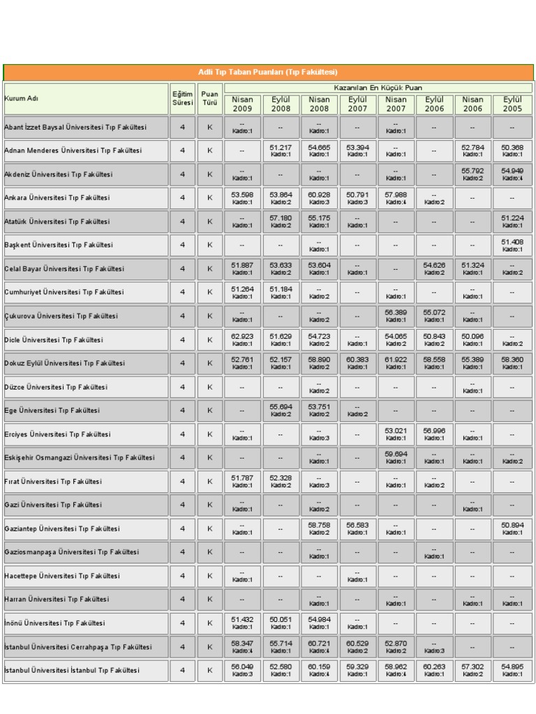 .tus taban puanları » tus 1. Tıp 2020 taban puanları ve tıp fakültesi başarı sıralamaları. Dönem sonuçlarını içermekte olup taban puanları yüksekten düşüğe doğru sıralanmıştır. Tıp fakültesi taban puanları 2021 ve tıp fakültesi başarı sıralamaları 2021 açıklandı. Aşağıdaki tabloda osym'nin yayınladığı tıp fakültesi 2021 bölümü'ne ait taban puanları , başarı sıralamaları , puan türleri ve kontenjan bilgilerine ulaşabilirsin. Adli bilimler taban puanları hakkında yök atlas verilerine göre hazırlanan en güncel veriler bu sayfada derlendi. Bağımlılık ve adli bilimler enstitüsü. Ösym kılavuzlarda artık taban puanları yayınlamadığı için ilgili taban puanlar yerleştirme i̇statistiklerinden alınarak gösterilmiştir. Adalet bakanlığı adli tıp kurumu başkanlığı 2019 yılı personel alımı başvuru sonuçlarını açıkladı. Bu yazımızdaki listede tıp taban puanları ve başarı sıralamaları yer alıyor. 2020 yks'ye girenler aşağıda yer alan tıp fakültesi bölümü taban puanları, başarı sıralamaları ve kontenjanları aşağıdan öğrenebilirsiniz. Tıp 2019 taban puanları ve tıp fakültesi 548,1738. İşte her kadro için taban ve tavan puanlar ile başvuru sonuç sorgulama ekranı.